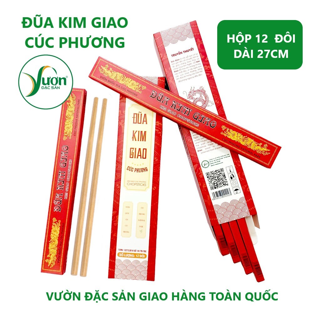 ĐŨA KIM GIAO (Hộp 12 đôi) Đũa Vua Chúa xưa sử dụng đũa gỗ quý từ Rừng Cúc Phương Ninh Bình - CHÍNH HÃNG VƯỜN ĐẶC SẢN