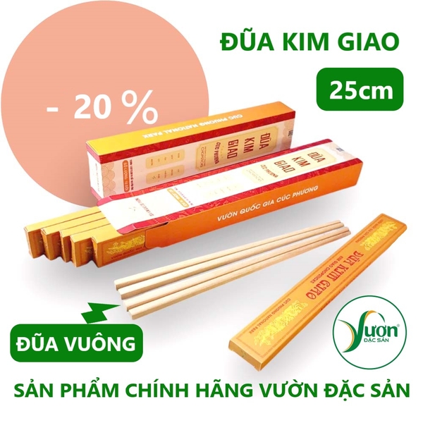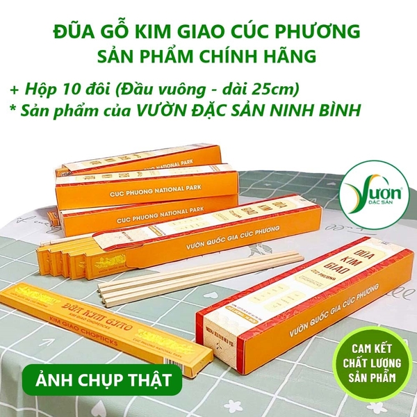 Đũa Kim Giao Cúc Phương ( Hộp 10 đôi dài 25cm - Đũa đầu Vuông ) Đũa ăn cơm gỗ cao cấp, đũa gỗ quý từ Rừng Cúc Phương Ninh Bình - CHÍNH HÃNG VƯỜN ĐẶC SẢN